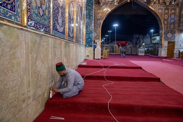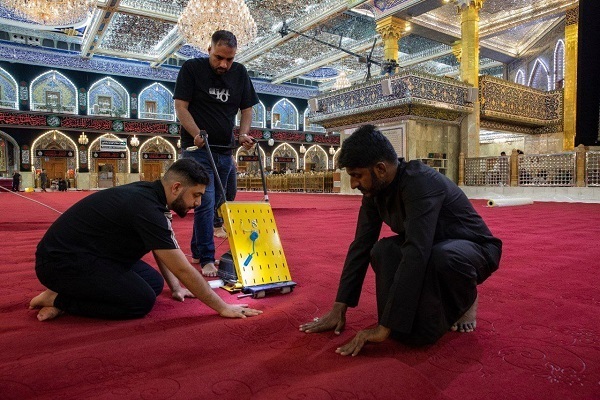 به گزارش ایکنا، خادمان حرم حضرت ابوالفضل العباس(ع) در آستانه محرم، این مکان مقدس را برای پذیرایی از زائران عزادار حسینی آماده‌سازی و با موکت قرمز فرش کردند.
