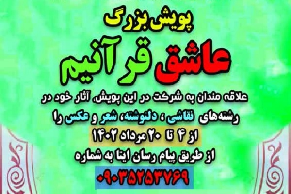 این پویش در بخشهای شعر، دلنوشته، عکس و نقاشی برگزار میشود و علاقهمندان میتوانند آثار خود را تا تاریخ ۲۰ تیرماه به شماره ایتای ۰۹۰۳۵۲۵۳۷۶۹ ارسال کنند.