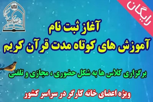 کارگران به همراه خانوادههای خود میتوانند تا دوم شهریورماه به صورت اینترنتی و از طریق سامانه آموزش خانه کارگر(سدا) به نشانی www.ketabequran.ir اقدام کنند.