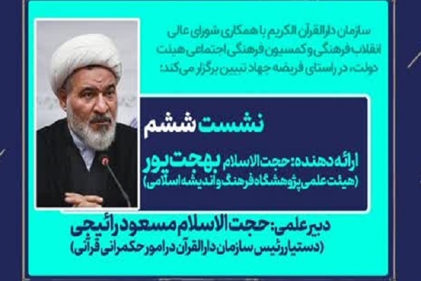 ششمین نشست از سلسله‌نشست‌های اندیشه‌ورزی قرآن و حکمرانی با موضوع فرایند مدیریت مسئله حیا و عفاف با ارائه حجت‌الاسلام والمسلمین عبدالکریم بهجت‌پور، عضو هیئت علمی پژوهشگاه فرهنگ و اندیشه اسلامی برگزار می‌شود.