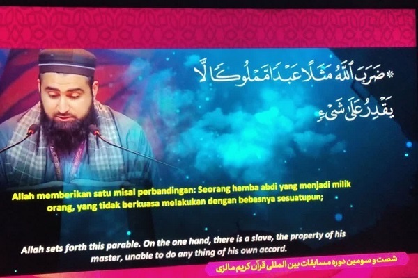 به گزارش ایکنا، دومین روز از شصت و سومین دوره مسابقات بینالمللی قرآن کریم مالزی، عصر روز یکشنبه 29 مردادماه با تلاوت 8 قاری از کشورهای مختلف برگزار شد که شبکه قرآن و معارف سیما از ساعت 16 تا 19 طبق روال، اقدام به پوشش مستقیم این رویداد کرد.