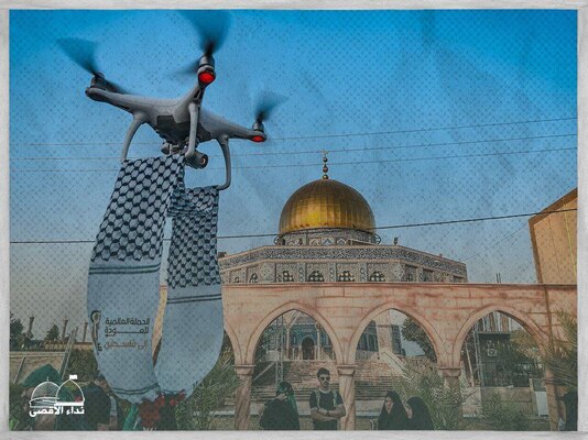 موکب نداء الاقصی با هدف تأکید بر لزوم یاری قبله نخست مسلمانان و عدم فراموشی مسجدالاقصی در مسیر پیادهروی اربعین حسینی در مجاورت عمود ۸۳۳ مزین به تصاویر شهدای مقاومت برپاشده است. عزاداران حسینی با در دست داشتن پرچمها و پارچه نوشتههایی با محوریت مقاومت بر تأسی به امام حسین(ع) نماد ایستادگی و اقتدار در برابر استبداد تأکید و با آرمان فلسطین تجدید بیعت میکنند.
