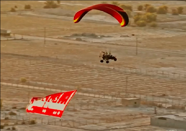 یک خلبان پاراگلایدر(چتربال) با پرواز بر فراز آسمان کربلا، پرچم «لبیک یا حسین(ع)» را بر سر زائران پیادهروی اربعین حسینی برافراشت.