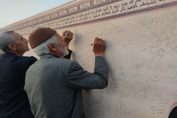 با توجه به اینکه حدود ۸۰ درصد این طومار در بزرگترین خیمه قرآنی اربعین واقع در عمود ۱۲۲۲ مسیر پیادهروی اربعین حسینی به امضای زائران اباعبدالله(ع) رسید، باقیمانده آن به متراژ ۲۵۰ متر در حرمهای مطهر قم و مشهد نصب شد تا عزاداران اهل بیت در ایام پایانی ماه صفر با امضای خود این طومار را کامل کنند.