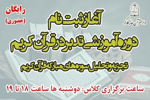 این دوره آموزشی به همت دارالقرآن خانه کارگر به شکل حضوری ویژه اعضای خانه کارگر شهر تهران برگزار میشود و مهلت ثبتنام تا سی شهریورماه اعلام شده است.