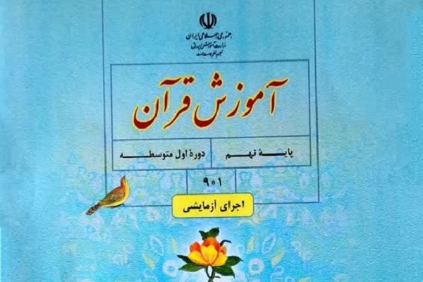 ۳- تغییر متن و تصویر پشت جلد کتاب درسی قرآن دوره اول متوسطه