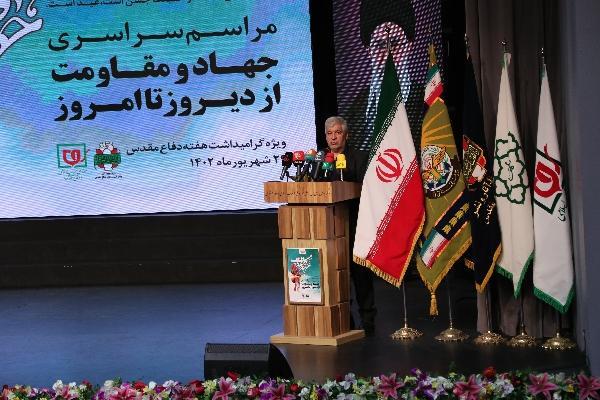 به گزارش ایکنا به نقل از روابط عمومی و امور بینالملل موزه ملی انقلاب اسلامی و دفاع مقدس، مراسم سراسری «جهاد و مقاومت؛ از دیروز تا امروز» امروز چهارشنبه 29 شهریور با حضور «علیرضا فخاری» استاندار تهران، سردار «محمدقاسم ناظر» مدیرعامل موزه ملی انقلاب اسلامی و دفاع مقدس، سردار «علیاصغر محسنشیخی» جانشین مدیرعامل موزه ملی انقلاب اسلامی و دفاع مقدس، حجتالاسلام والمسلمین «سید جعفر طباطبایی» رئیس عقیدتی سیاسی بنیاد حفظ آثار و نشر ارزشهای دفاع مقدس، «سیدمحمدحسین حجازی» مدیر عامل منطقه فرهنگی و گردشگری عباسآباد، سرهنگ پاسدار «محمدمهدی حسنزاده» مسئول سازمان بسیج شهرداری تهران و جمعی از پیشکسوتان دفاع مقدس و خانوادههای شهدا در سالن خلیج فارس موزه ملی انقلاب اسلامی و دفاع مقدس برگزار شد.