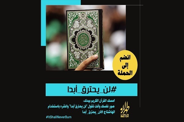 رادیو عربی تهران اعلام کرد: «در چارچوب سخنرانی ابراهیم رئیسی، رئیس جمهور ایران در مجمع عمومی سازمان ملل متحد که با در دست داشتن قرآن کریم توهین به این کتاب خدا را محکوم کرد، رادیو عربی تهران هشتگ (#لن_يحترق_أبدا) #هرگز_نخواهد_سوخت را راهاندازی کرده است.