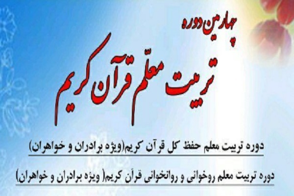به گزارش ایکنا، چهارمین دوره تربیت معلم حفظ کل قرآن و روخوانی و روان‌خوانی ویژه بانوان و آقایان به میزبانی اداره نور وزارت دفاع و پشتیبانی نیروهای مسلح برگزار می‌شود.