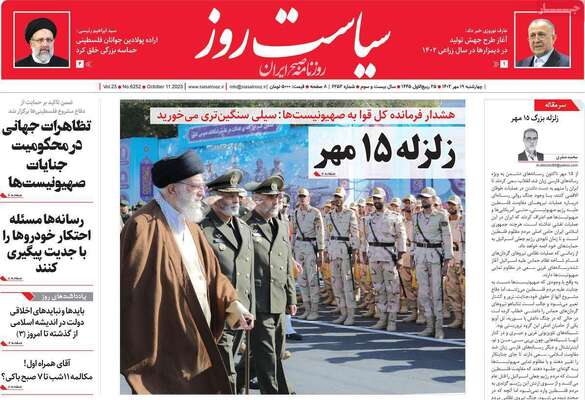 صفحه نخست روزنامههای صبح امروز چهارشنبه ۱۹ مهر ۱۴۰۲ را در ادامه مشاهده میکنید.