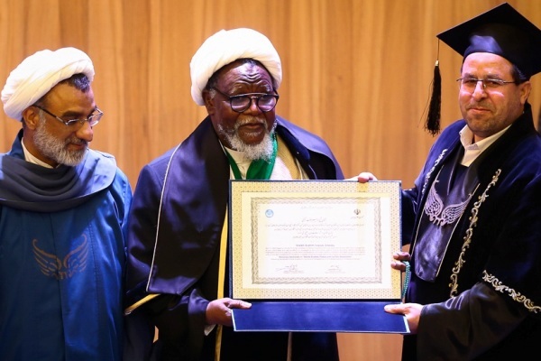غلامعلی حداد عادل، رئیس فرهنگستان زبان و ادب فارسی و عضو شورای علمی اعطای دکترای افتخاری «مطالعات جهان: صلح و حل منازعه Honorary Doctorate on World Studies: Peace and Conflict Resolution» به شیخ ابراهیم یعقوب زکزاکی، در آئین اعطای دکترای افتخاری به شیخ زکزاکی، از شیخ زکزاکی به عنوان «مجاهد بزرگ» یاد کرد و گفت: دانشگاه تهران به پاس ایمان و استقامت این مرد بزرگ، دکترای افتخاری خود را به ایشان اعطا میکند. این برای دانشگاه تهران افتخار است که میتواند از چنین بزرگمردی تجلیل کند.