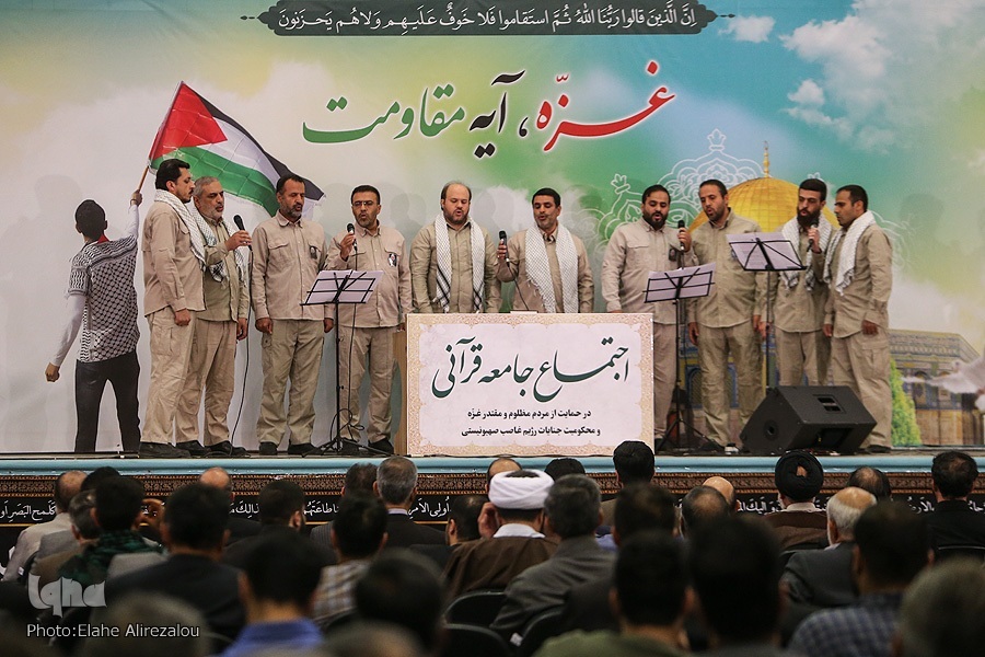 حسن ختام این برنامه تلاوت آیاتی از کلام الله مجید توسط حمیدرضا احمدیوفا، قاری بینالمللی کشورمان و یکصدا شدن جامعه قرآنی و دعا برای مردم مظلوم و مقتدر فلسطین و نابودی رژیم ظالم و کودککش صهیونیستی بود.