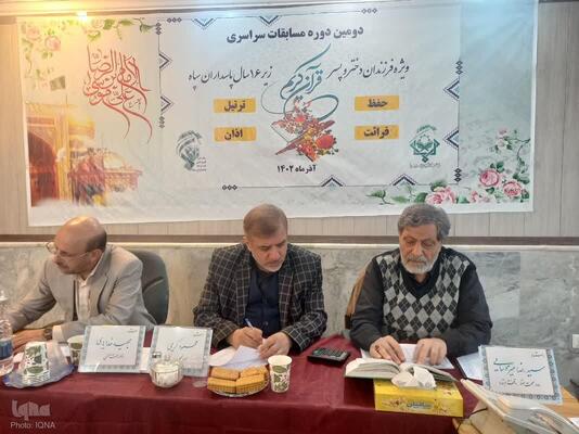 وی ادامه داد: اسامی اساتید داور در قسمت پسران نیز در بخش حفظ سیدرضا میرموسایی در صحت حفظ، وقف و ابتدا، محمود کریمی در تجوید، مجید خدایاری در صوت و لحن و همچنین در بخش ترتیل و تحقیق حمید شیخزاده در لحن، مسعود وادیپور در تجوید، علیاصغر برومند در صوت، وقف و ابتدا و در بخش اذان حسن ربیعیان در صحت و فصاحت، صوت و عبدالوحید جعفرزاده در لحن از داوران این بخش بودند.