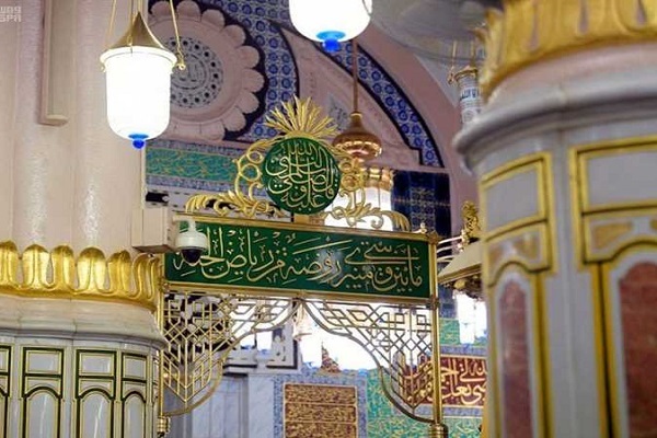 ورود به روضه شریفه از صحنهای جنوبی مقابل باب مکه و درب شماره 37 امکانپذیر است.