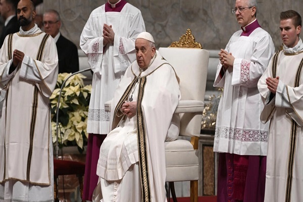 پاپ در مراسم عشای ربانی خود در شب کریسمس لحن تأسفآمیزی داشت و گفت که به افرادی فکر میکند که از جنگ رنج میبرند «ما به فلسطین، اسرائیل، اوکراین فکر میکنیم».