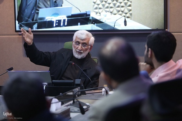 جلیلی در این نشست محور سخنان خود را با توجه به نزدیکی موسم انتخابات مجلس شورای اسلامی و خبرگان رهبری حول این موضوع بیان کرد و با اشاره به اینکه بنا به فرمایش مقام معظم رهبری نیاز به این امر وجود دارد که در انتخابات پیش رو حضور پرشور و حداکثری مردم را شاهد باشیم که با مشارکت خود، بلوغ اجتماعی و سیاسی خود را نشان دهند، گفت: در مباحث نظری پیشین که در جلسات قبل آن را مطرح کردیم، سخن از این مسئله به میان آمد که اندیشه سیاسی در هر مکتبی پایه و اساسی دارد که نگاه به انسان و هستی و معرفت در مورد رابطه میان این دو و اینکه تا چه اندازه این رابطه از قوام و پختگی لازم برخوردار باشد، این امر می‌تواند جامعه را به سمت یک جامعه متعالی و آرمانی؛ آنچه که در نگرش فلسفی از آن به آرمانشهر، مدینه فاضله یا اتوپیا یاد می‌شود، هدایت کند.