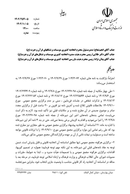در برگزاری هرگونه مجمع عمومی و یا تصمیمات هیئت مدیره و ... ابتدا به ضوابط، مقررات و مصوبات شورای عالی انقلاب فرهنگی و وزارت فرهنگ و ارشاد اسلامی توجه فرمایید، در مرحله بعد با مداقه در اساسنامه آن اتحادیه راهکار قانونی متناسب با وضعیت جاری انتخاب شود. بنابر این صورتجلسه مورخ دهم آذر 1402 تحت عنوانی در اساسنامه آن اتحادیه وجود ندارد و با توجه به اینکه امکان گزینش از بین راه کارهای قانونی موجود در اساسنامه وجود دارد که دلیل برگزاری مجمع فوق العاده منحصر به چهار بند مصرح در ماده 25 اساسنامه باشد و وظایف و اختیارات مجمع عمومی عاری نیز در ماده 24 اساسنامه آن اتحادیه به تفصیل مطرح شده است، لذا در شرایطی که در نامههای قبلی این دبیرخانه راهکارهای قانونی به تفصیل تشریح شده بوده، بنابراین مجمع عمومی عادی به طور فوق العاده منطبق با اساسنامه آن اتحادیه نمیباشد.