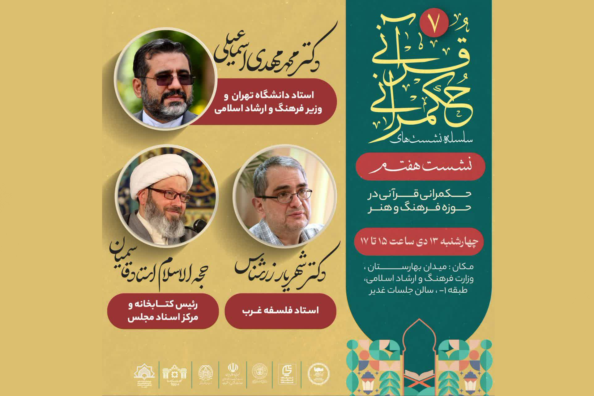 هفتمین جلسه از سلسله‌نشست‌های حکمرانی قرآنی با موضوع «حکمرانی قرآنی در حوزه فرهنگ و هنر» ۱۳ دی‌ماه برگزار می‌شود.