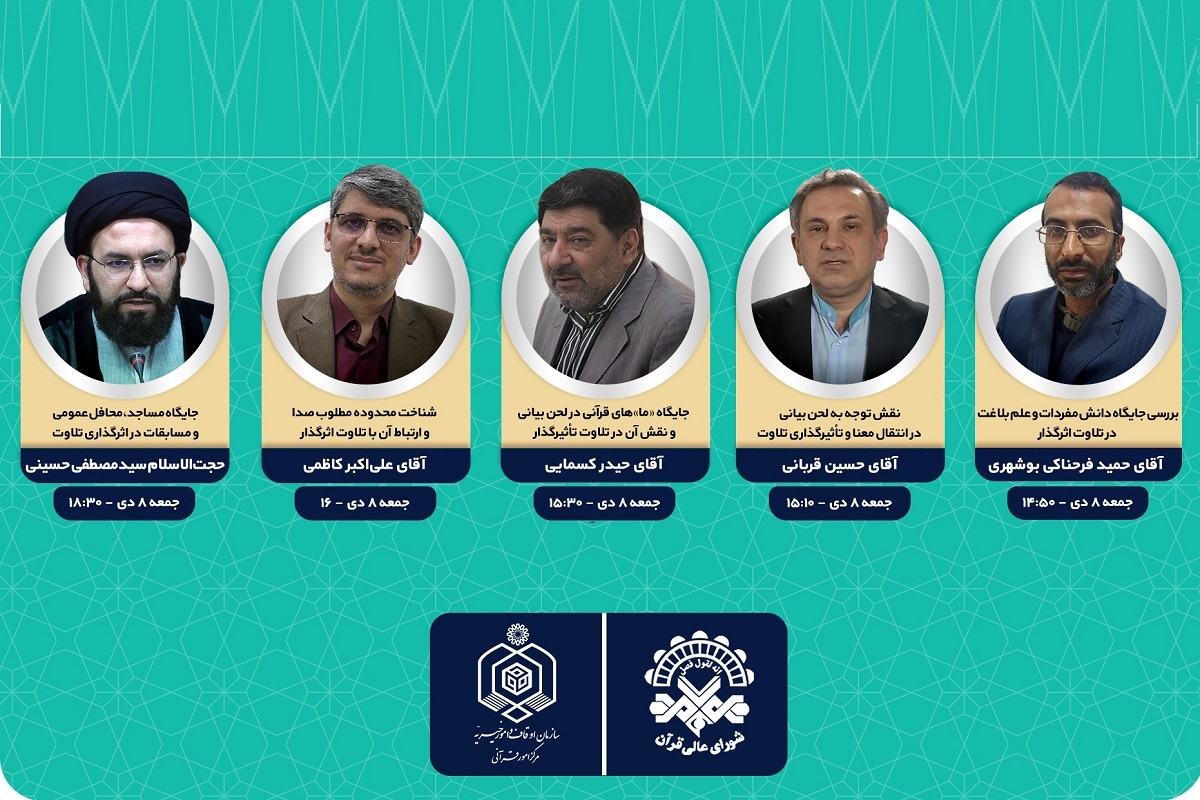 روز پایانی این نشست که امروز جمعه هشتم دیماه است، مقالات «بررسی جایگاه دانش مفردات و علم بلاغت در تلاوت اثرگذار» از سوی حمید فرحناکیبوشهری، «نقش توجه به لحن بیانی در انتقال معنا و تأثیرگذاری تلاوت» از سوی حسین قربانی، «جایگاه ما های قرآنی در لحن بیانی و نقش آن در تلاوت تأثیرگذار» از سوی حیدر کسمایی، «شناخت محدوده مطلوب صدا و ارتباط آن با تلاوت اثرگذار» از سوی علیاکبر کاظمی و «جایگاه مساجد، محافل عمومی و مسابقات در اثرگذاری تلاوت» از سوی حجتالاسلام سیدمصطفی حسینی در هجدهمین نشست تخصصی استادان، قاریان و حافظان ممتاز قرآن کریم ارائه میشود.
