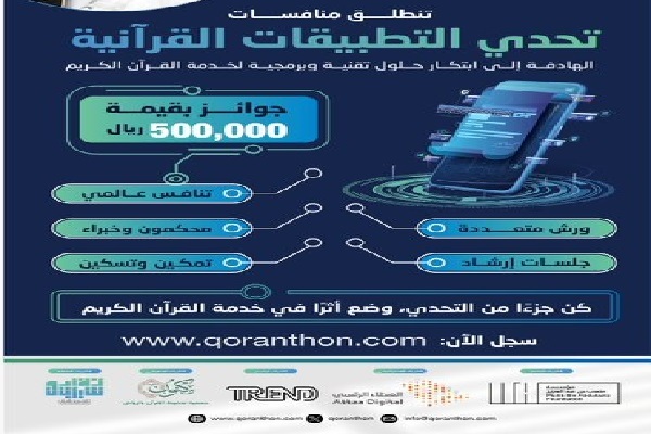 به گزارش ایکنا به نقل از الریاض، رویداد رقابت اپلیکیشنهای قرآنی برای تعیین بهترین اپلیکیشن قرآنی با همکاری انجمن حفظ قرآن منطقه ریاض (المکنون) و بخش دیجیتال وزارت ارتباطات و فناوری اطلاعات عربستان و همچنین بنیاد ملی متعب بن عبدالعزیز روز یکشنبه 31 دسامبر ( 10 دی) آغاز شد. در این رویداد رقابتها برای انتخاب بهترین اپلیکیشن قرآنی انجام خواهد شد. داوری میان شرکتکنندگان در 27 ژانویه (15بهمن) انجام و برگزیدگان در طی مراسمی در 11 فوریه (22 بهمن) معرفی خواهند شد. جوایز اختصاص یافته به برگزیدگان بالغ بر 500 هزار ریال سعودی است.