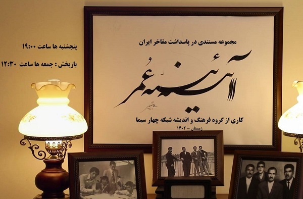 آیینه عمر مجموعه مستند ۲۶ قسمتی در پاسداشت مفاخر فرهنگی ایران از چهاردهم دی هر پنجشنبه ساعت ۱۹ روی آنتن شبکه چهار خواهد رفت.
