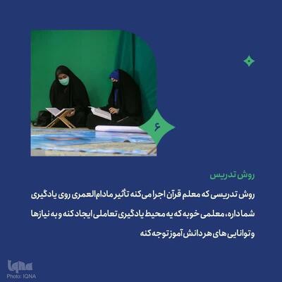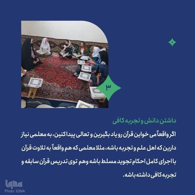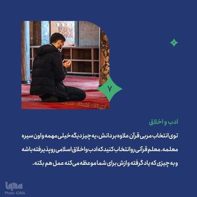در ادامه هفت ویژگی، یک مربی خوب قرآن در قالب عکس نمایش داده شده و این تصاویر از سوی ستاد جلسات خانگی قرآن تهیه شده است.