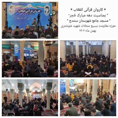 برهمین اساس پنجشنبه و همزمان با آغاز ایام دهه فجر، کاروان قرآنی انقلاب وارد سنندج شد و میزبان مردم قرآندوست این شهر بود. در این شهر نیز، از ساعت ۹ تا ۲۱ به اجرای برنامه پرداخت.