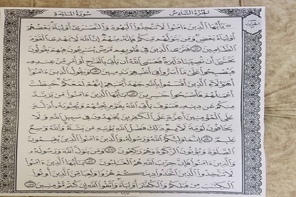 این جوان اردنی به گفته خود در روزهای تعطیل با صرف 6 ساعت زمان به طور متوسط 5 صفحه از قرآن کریم را کتابت میکرده است.