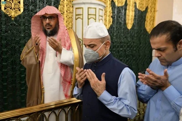 به گزارش ایکنا به نقل از المدینه، شهباز شریف، نخستوزیر پاکستان عصر دیروز، 18 فروردین با حضور در مسجدالنبی، به اقامه نماز در این مکان مقدس پرداخت و آرامگاه پیامبر(ص) را زیارت کرد.