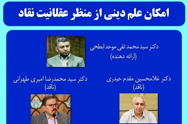 به گزارش ایکنا، نشست امکان علم دینی از منظر عقلانیت نقاد با سخنرانی سیدمحمدتقی موحد ابطحی، عضو هیئت علمی پژوهشگاه علوم انسانی و مطالعات فرهنگی یکشنبه 26 فروردین ساعت 10 تا 12 برگزار میشود.