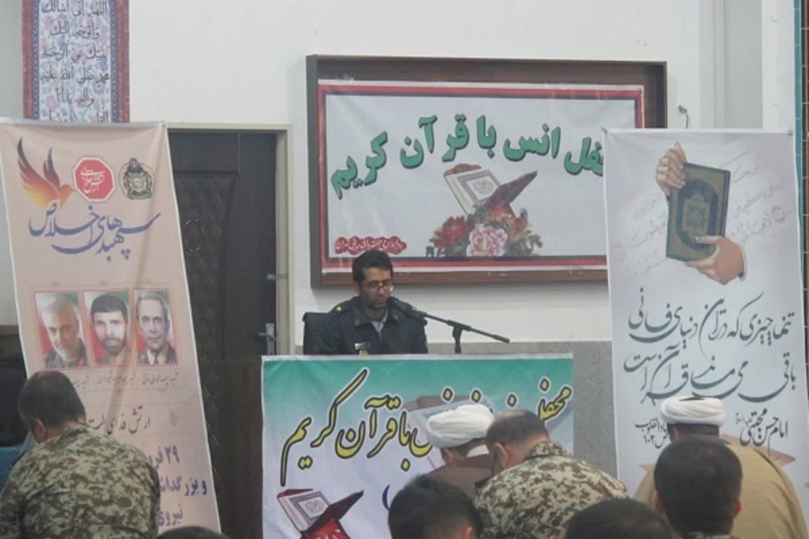رضا محمودی و احسانالله رحمانی، دو نفر از قاریان ممتاز کشور در این محفل به تلاوت قرآن پرداختند و پس از آن رئیس عقیدتی ـ سیاسی این منطقه هوایی به تفسیر آیات تلاوت شده پرداخت و گفت: در میدان مبارزه نباید از دشمن ترسید.