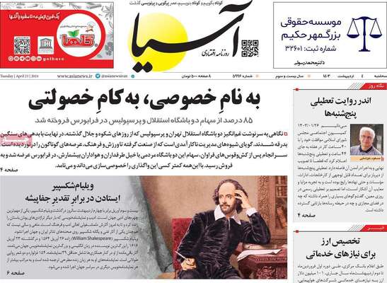 صفحه نخست روزنامههای سهشنبه ۴ اردیبهشت ۱۴۰۳