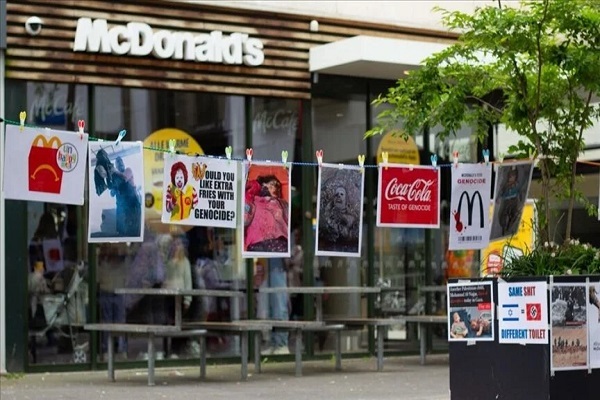 تظاهراتکنندگان پرچمهای فلسطین را مقابل شعبههای این رستوران نصب کردند و پلاکاردهایی با مضامین «مکدونالد با نسلکشی تغذیه میکند»، «آیا با نسلکشی که مرتکب میشوید مقداری سیبزمینی سرخ شده اضافی میخواهید؟»، «غزه مورد حمله قرار گرفته است» را بر روی دیوارها و زمین چسباندند و بروشورهایی حاوی توضیح نسلکشی اسرائیل در غزه را میان عابران در کنار شعبه مکدونالد پخش کردند.
