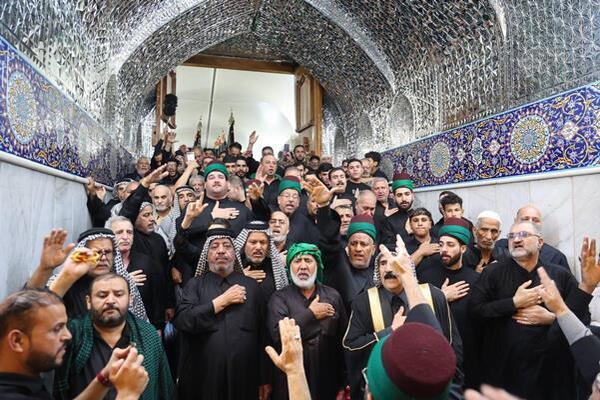 در مسیر عزاداری این موکب در شهر کاظمین، عزاداران با حضور در حرم مطهر امام موسی کاظم(ع)، شهادت پدر بزرگوار ایشان، امام جعفر صادق(ع) را به آن حضرت تسلیت گفته و سپس با هماهنگی بخش مواکب حسینی عراق و جهان اسلام وابسته به آستانهای حسینی و عباسی، در صحن حرم امام کاظم(ع) به عزاداری پرداختند.