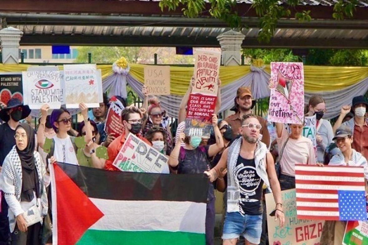 اعتراض به جنایات اسرائیل مقابل کنسولگری آمریکا در تایلند + عکس