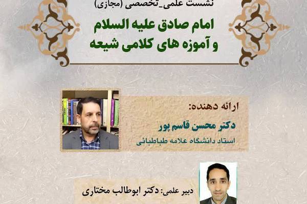 نشست «امام صادق(ع) و آموزه‌های کلامی شیعه» از سوی پژوهشکده قرآن و عترت نهاد نمایندگی مقام معظم رهبری در دانشگاه آزاد اسلامی برگزار می‌شود.