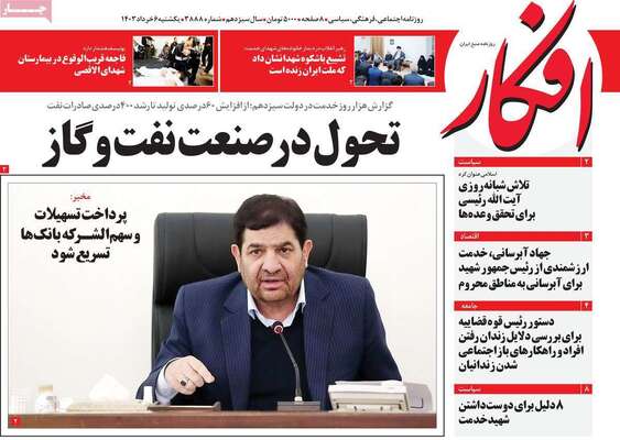 صفحه اول جراید کشور