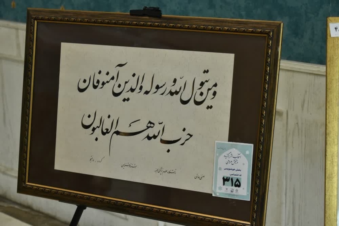 به گزارش ایکنا، در حاشیه مرحله نهایی بیست و هشتمین دوره جشنواره قرآن و عترت وزارت بهداشت که از روز گذشته هفتم خردادماه به میزبانی دانشگاه علوم پزشکی مشهد آغاز شده، نمایشگاهی از آثار هنری برپا شده است.