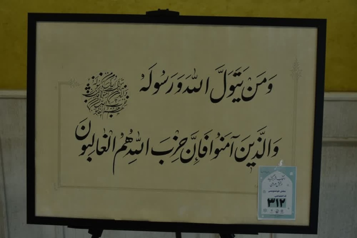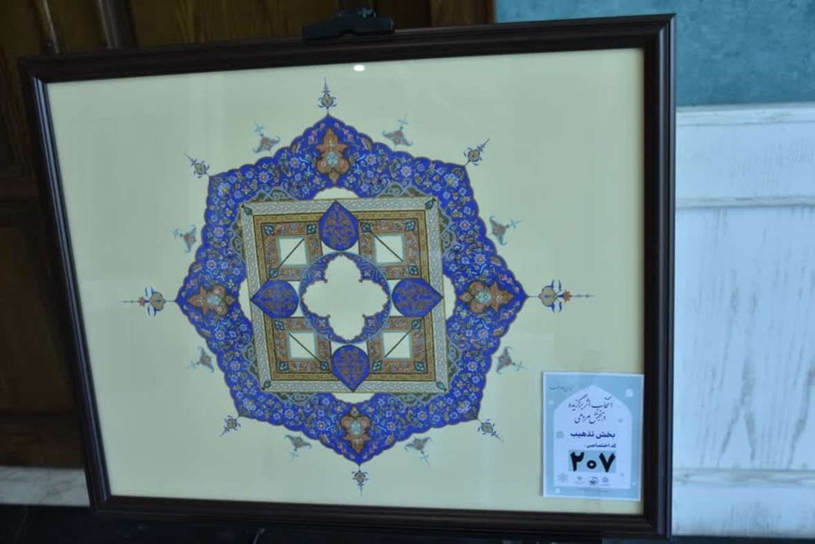 بر همین اساس این نمایشگاه شامل آثار دریافت شده شرکتکنندگان در رشتههایی همچون نقاشی، تذهیب، خوشنویسی، معرق و منبت است که در محل برگزاری این مسابقات (تالار حافظ مجتمع شهدای سلامت شهر مشهد) در معرض دید شرکتکنندگان قرار گرفته است.
