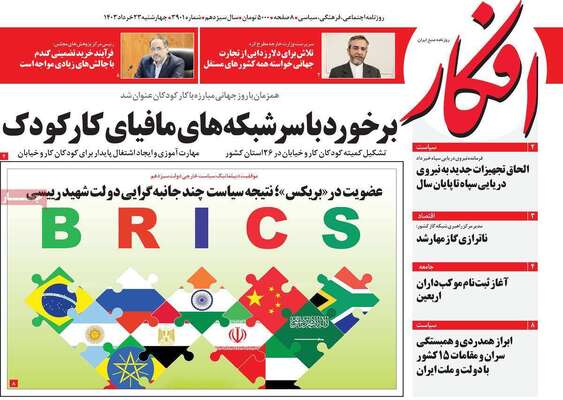 صفحه نخست روزنامههای چهارشنبه ۲۳ خرداد ۱۴۰۳