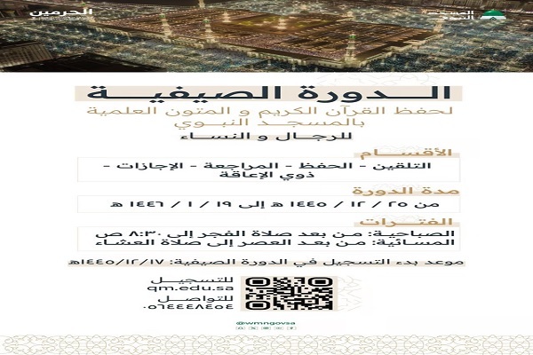 رونق فعالیت دورههای مختلف قرآنی در مسجدالنبی و مسجدالحرام در کنار افزایش فعالیت حلقههای مجازی آموزش حفظ و تلاوت قرآن کریم به ویژه دورههای آموزش قرآن کریم از راه دور یکی از مهمترین تحولاتی بوده که در سالهای اخیر در زمینه فعالیتهای قرآنی در حرمین شریفین صورت گرفته است.