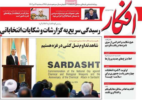 صفحه نخست روزنامههای سهشنبه ۱۲ تیر ۱۴۰۳ را در ادامه مشاهده میکنید.