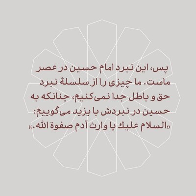 آنان درباره حسین(ع) می‌گفتند: «او از حد و حدود خود تجاوز کرد و با شمشیر جدش کشته شد». این حكمی بود كه در محكمه برای امام حسین(ع) صادر كردند. می‌گفتند: چرا عصیان می‌کنی؟ چرا نمی‌گذاری مردم شادمان باشند؟... من آمده‌ام تا به شما هشدار دهم كه اسرائیل هم همان حرف را می‌زند: بیایید با هم زندگی كنیم، بیایید با هم زندگی مسالمت‌آمیز داشته باشیم!. آیا این حرف‌ها از دولتی که بر اساس اشغالگری و تعدی و طمع و زیاده‌خواهی برپاست، پذیرفتنی است؟ پس، این نبرد امام حسین(ع) در عصر ماست. ما چیزی را از سلسله نبرد حق و باطل جدا نمی‌كنیم، چنانكه به حسین در نبردش با یزید می‌گوییم: «السلام علیك یا وارث آدم صفوة الله». [امام موسی صدر، کتاب سفر شهادت]
