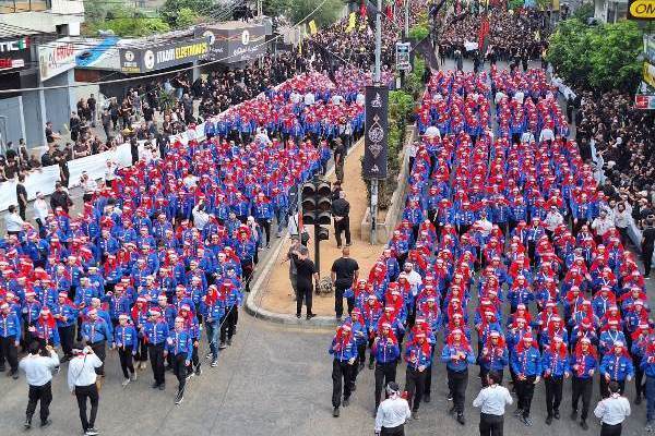 مراسم بزرگداشت روز عاشورا با قرائت سیره امام حسین(ع) آغاز شد و راهپیمایان با در دست داشتن پرچمهای عزا و تصاویری از امام خمینی(ره)، حضرت آیتالله خامنهای، سید حسن نصرالله و امام موسی صدر به سمت میدان امام حسین(ع) که قرار بود سید حسن نصرالله، دبیرکل حزبالله لبنان در آنجا به مناسبت روز عاشورا سخنرانی کند، حرکت کردند.