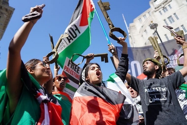 یک روز پس از تشکیل دولت جدید انگلیس به رهبری حزب کارگر، تظاهراتی در لندن در همبستگی با غزه و درخواست از دولت جدید به رهبری کایر استارمر برای اتخاذ موضع در خصوص آتشبس غزه برگزار شد.