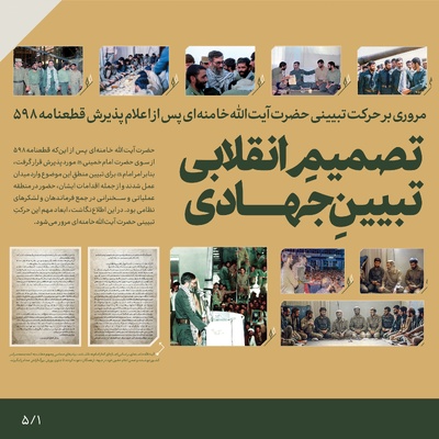 رهبر معظم انقلاب پس از اینکه قطعنامه ۵۹۸ از سـوی امامخمینی(ره) مورد پذیرش قرار گرفت، بنابر امر امام(ره) برای تبیین منطقِ این موضوع وارد میدان عمل شدند و از جمله اقدامات ایشان، حضور در منطقه عملیاتی و سخنرانی در جمع فرماندهان و لشکرهای نظامی بود. در اطلاعنگاشت ارائه شده، ابعاد مهم این حرکتِ تبیینی آیتالله خامنهای مرور میشود.