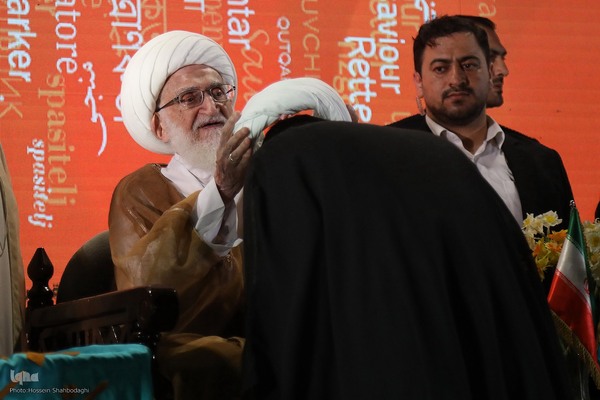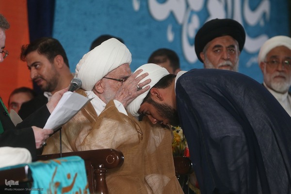 عمامه گذاری طلاب توسط آیت االه نوری همدانی