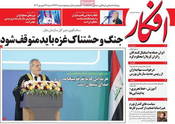 صفحه نخست روزنامههای شنبه ۲۴ شهریور ۱۴۰۳