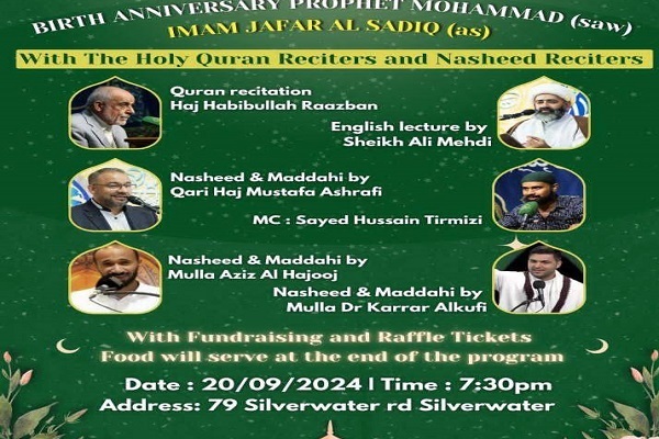 وی با اشاره به اینکه مراسم مذکور با محفل قرآنی، سخنرانی و مولودیخوانی همراه است تصریح کرد: شیعیان در سیدنی هر هفته با حضور در محافل دعا با ائمه(ع) تجدید میثاق میکنند.