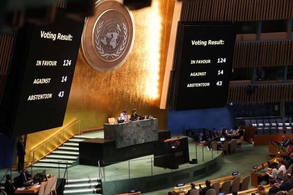 این قطعنامه با ۱۲۴ رأی مثبت در مقابل ۱۴ رأی منفی و ۴۳ رأی ممتنع تصویب شد.